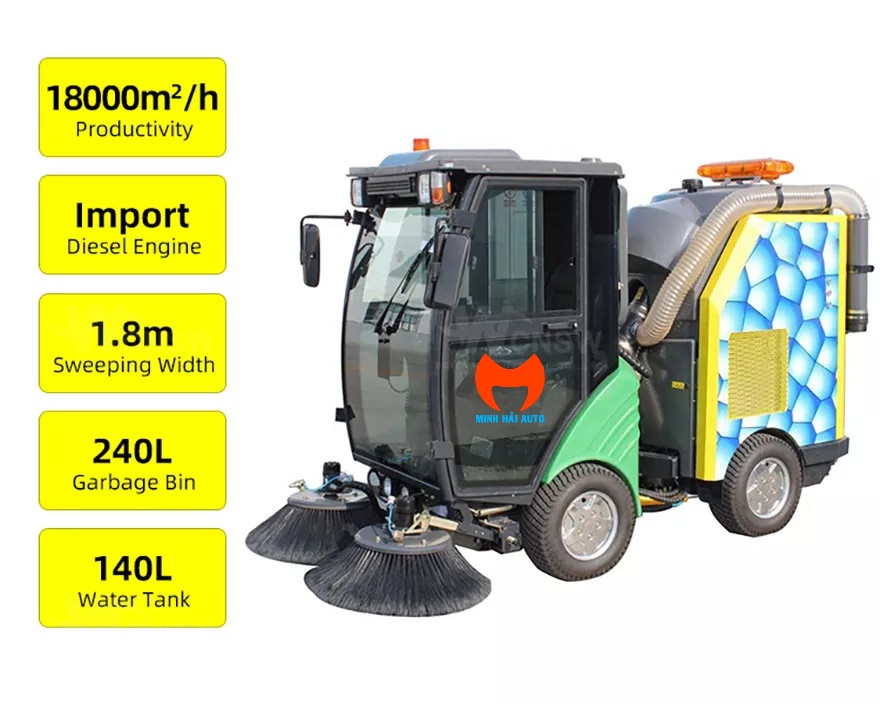 Đây là dòng xe quét loại nhỏ chạy bằng nhiên liệu diesel kinh tế cao. Xe quét mini 240L thùng chứa rác, trang bị thêm téc nước dập bụi 140L. Xe đặc phù hợp cho việc dọn quảng trường, sân kho bãi, công viên, bảo tàng, kho du lịch, cảng biển, đường đô thị, lối đi bộ,…và nhiều khu vực đặc biệt khác. Xe đặc biệt phù hợp để làm sạch lối đi nhỏ hẹp, uốn cong.