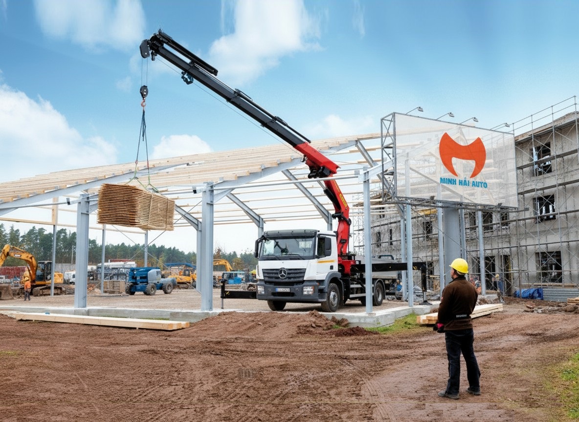 Nhờ kết hợp linh hoạt giữa khả năng vận chuyển và nâng hạ, xe tải gắn cẩu tự hành trở thành “trợ thủ cơ giới” không thể thiếu trong nhiều lĩnh vực sản xuất và thi công hiện nay:
