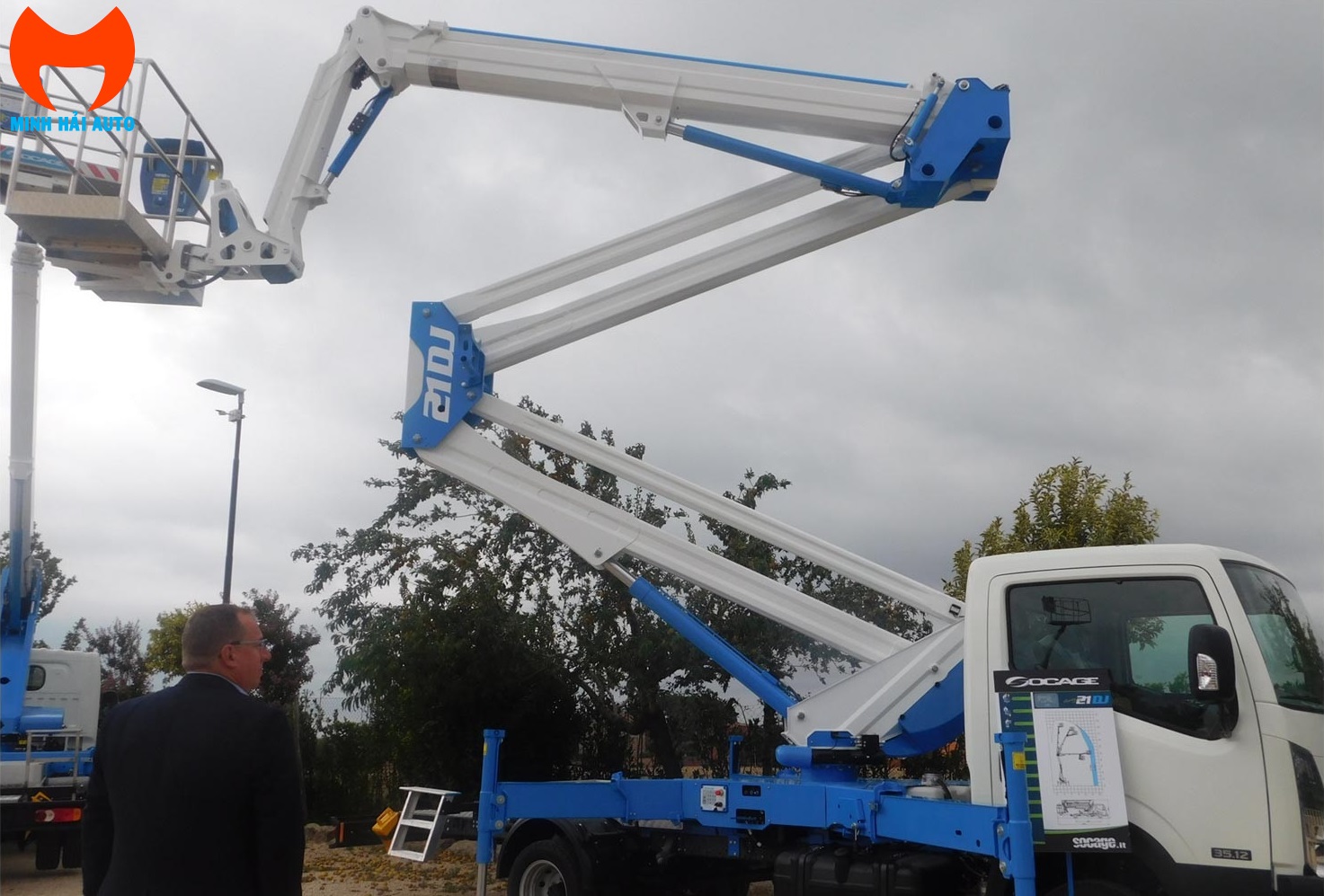 Socage 21DJ là dòng xe nâng người ô tô, cần nâng dạng gấp khúc kết hợp ống lồng có khả năng tiếp cận đa điểm trong không gian làm việc, mặt khác dòng D là dòng cải tiến từ dòng A với cần gấp khúc dạng đôi so với cần A nâng cao sức mạnh và độ ổn định của cần, nâng cao an toàn và hiệu quả nâng người. Ngoài ra cần phụ jib làm cho sản phẩm tốt hơn từ sản phẩm tốt nhất. Xe phù hợp lắp đặt trên nền xe tải nhỏ và trung có tổng tải ≥3.5 tấn. Xe được nhập khẩu nguyên chiếc từ Italia hoặc lắp ráp tại Minh Hải Auto (thiết bị nâng nhập khẩu đồng bộ và lắp đặt hoàn thiện trên nền xe thông dụng tại Việt Nam- giải pháp kinh tế và phù hợp thị trường).
