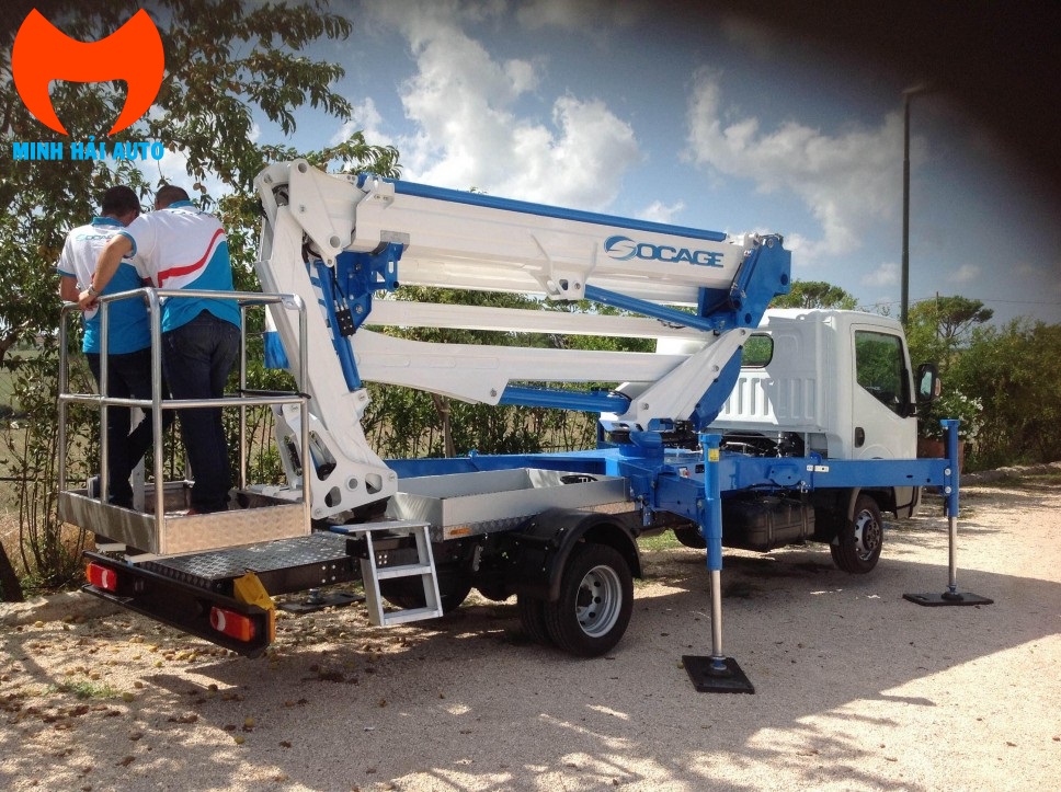 Xe nâng người Socage có chiều cao làm việc trải dài từ 12 đến 100m, trong xe nâng người 21m Socage 21DJ lắp đặt trên nền xe cơ sở là xe ô tô là model có chiều cao làm việc tầm trung, phủ khắp hầu hết các công việc cần đưa người lên cao, phù hợp đa dạng các ngành nghề.
